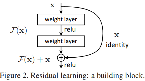 residual F(x) = H(x) - x 학습, output y = F(x) + x