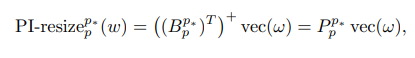 w를 새롭게 resizing, 목적인 p행렬을 w벡터에 곱하는 것. 이는 bilinear resize의 B의 inverse에 해당한다.